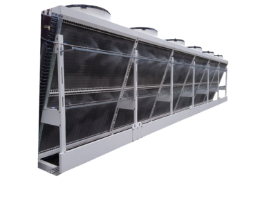Für bestmögliche Ergebnisse der adiabaten Kühlung sollten die Nebeldüsen des Befeuchtungssystems stets in Luftrichtung sprühen. Dadurch wird eine große Verteilung der Nebelkühlung auf der Rückkühlerfläche erzielt, was über verschiedene Stränge zu- oder abgeschaltet werden kann und die Verdunstungskühlung individuell steuerbar macht.