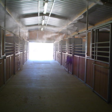 Ebenfalls bedeutend ist der Kühleffekt, der mit einer Luftbefeuchtung im Stall einhergeht. Wird der Umgebungsluft durch Verdunstung von Wasser Wärmeenergie entzogen, lassen sich Abkühlungswerte von 5 bis 15 °C erreichen. So werden überhitzte Ställe und lebensbedrohliche Hitzestaus vermieden und das Wohlbefinden der Stallbewohner gesichert.