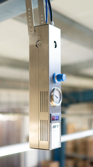 Das Luftbefeuchtungssystem kann in belüfteten und unbelüfteten Räumen eingesetzt werden. Ebenfalls eignet sich das Gerät für Räume und Hallen mit geringer Deckenhöhe, deren Lagergut oder Fertigungsprozess keine grobe Befeuchtung zulässt, wie z. B. Druckereien, Käsereien, Reiferäume u.v.m.